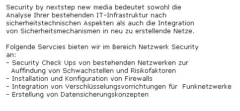Ausgerechnet dem Portalbetreiber von medienmanagement.at, der nextstep new media M. Aulenbach KEG, die unter anderem Dienstleistungen wie Foren im www sowie Internet-Security anbietet, wurde eine Sicherheitslücke im eigenen System hier zum Verhängnis. Denn die Wahrscheinlichkeit, daß ein eigenes Forumsmitglied die Zugangsdaten übermittelt, sind doch eher nicht anzunehmen, aber so erhielten wir durch den Direktlink Einblicke, die die berufliche Einstellung so mancher angehender Medienfachkräfte darstellt, in ein eigenes Licht rückt und einmal mehr die Oberflächlichkeit der gegenwärtigen Gesellschaft zum Ausdruck bringt.